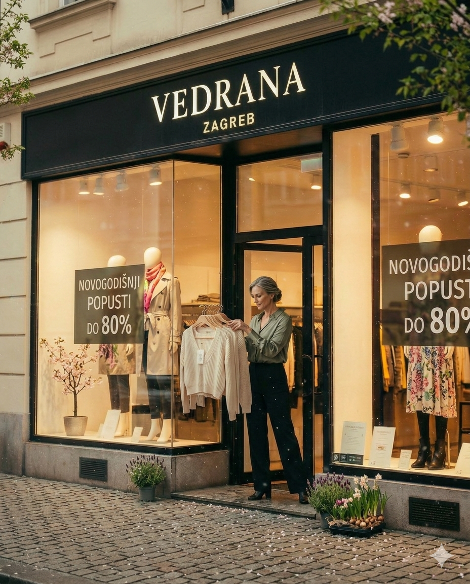 Danas, s dubokom zahvalnošću za ljubav i povjerenje koje nam ukazujete, nastavljamo s istom strašću i donosimo Vedrana Zagreb u svaki kutak Hrvatske. Želimo da svatko pronađe komad koji mu savršeno pristaje i koji ga nasmijava svaki put kad ga obuče.