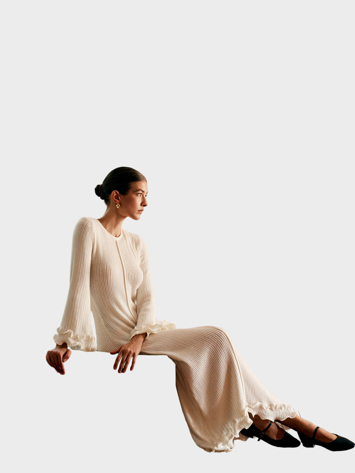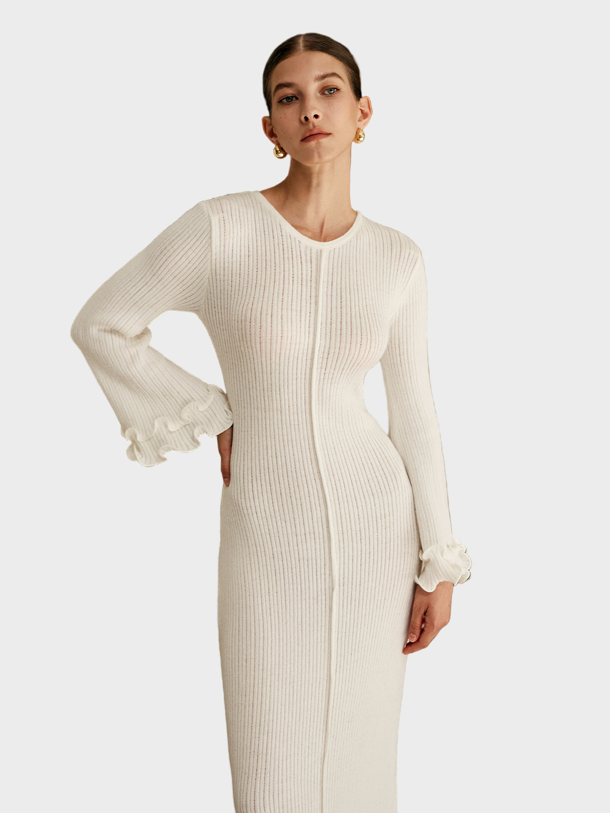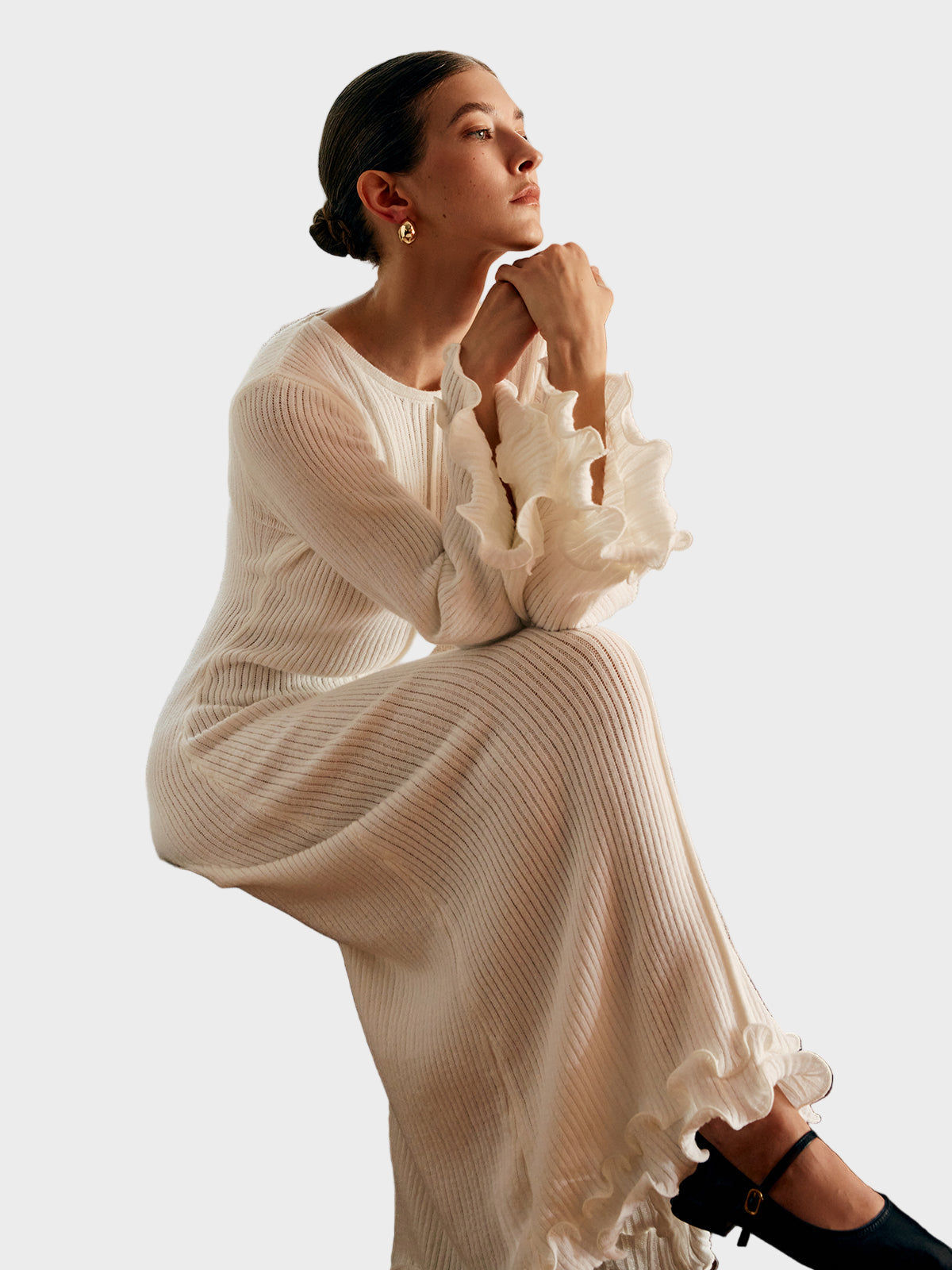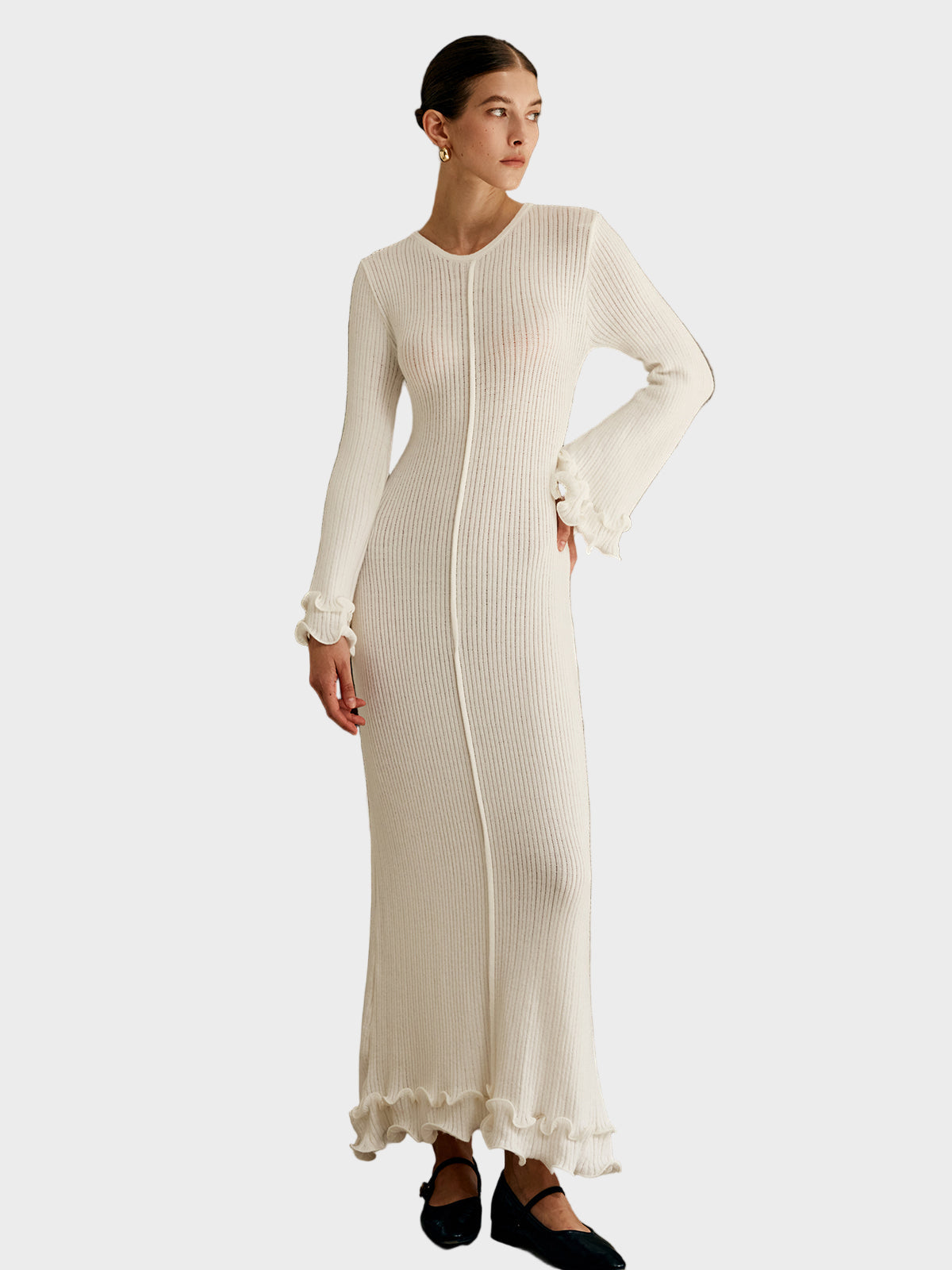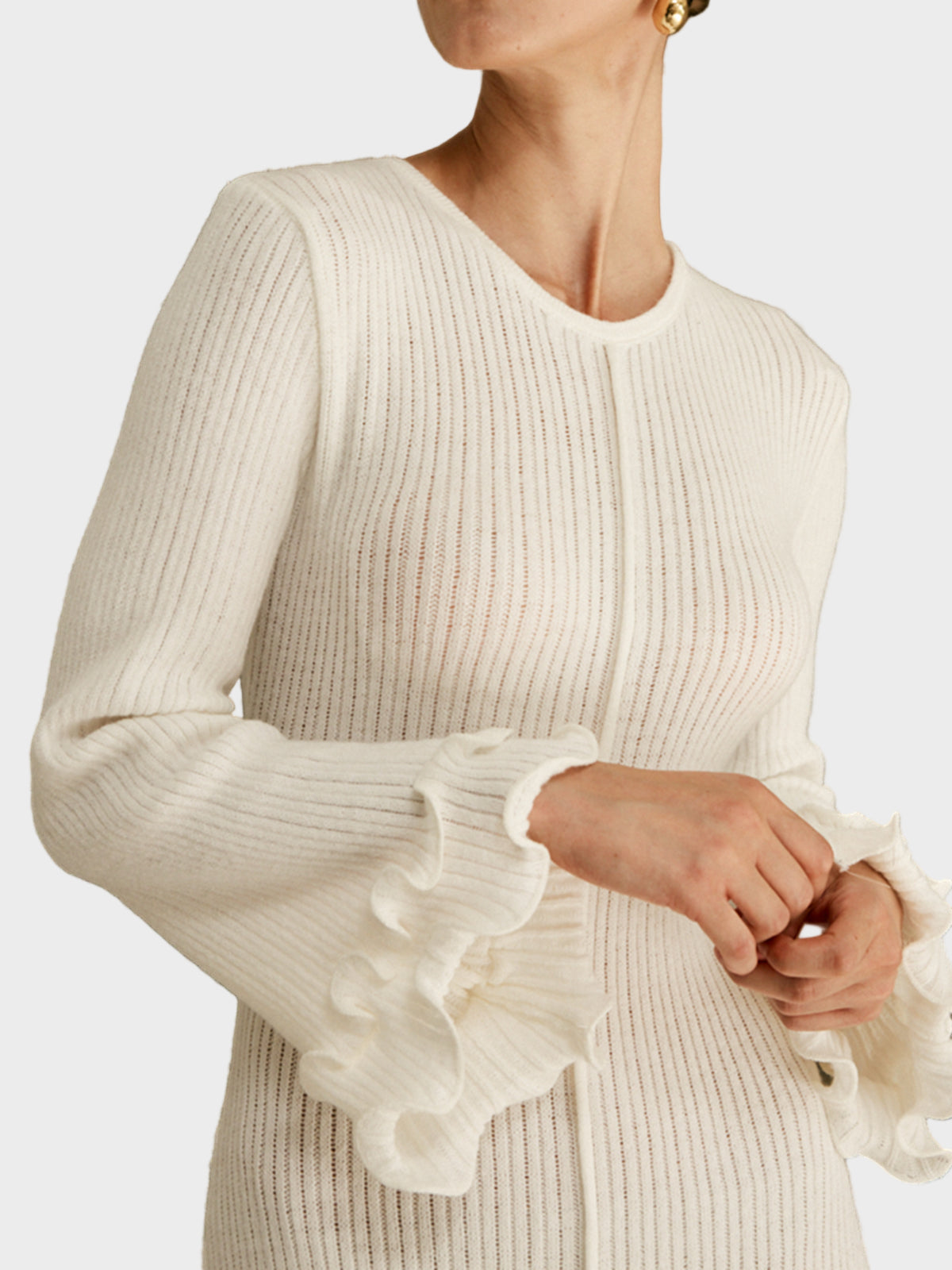 Pletena haljina s volanima i vezicom.