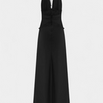 - Duboki halter izrez koji stilizira i ističe dekolte s elegancijom
