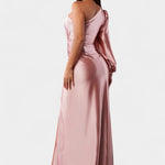 Obuci je i osjeti kako te elegancija obavija, pretvarajući svaki korak u izjavu čiste sofisticiranosti. S njezinim asimetričnim izrezom, oblikovanom draperijom i vezanom strukom, Andrea se kreće fluidno kako bi istaknula tvoju figuru i ostavila trag na svakoj posebnoj prigodi.