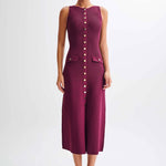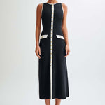 Elegantna pletena haljina bez rukava s dugim gumbima. Njezina ravna linija pruža bezvremensku eleganciju, dok gumbi na džepovima dodaju sofisticiran detalj. Idealna za pojavljivanja od jutra do večeri.