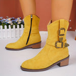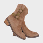 Podignite prašinu sa stilom uz ove čizme od brušene kože do gležnja, izrađene s rustikalnim kopčama u zapadnjačkom stilu koje odišu šarmom Divljeg zapada. Udobne, svestrane i bez napora odvažne, spremne su pratiti vas od izlaska do zalaska sunca.