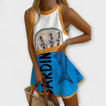 Pozdravite mir i udobnost s mini haljinom Isoria u plavom uzorku – neizostavnim komadom koji spaja opušteni karakter s elegantnim dizajnom. Apstraktni motivi inspirirani oceanom čine je idealnim suputnikom za sunčane izlete, jutarnje kupovine ili opuštene trenutke kod kuće.