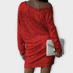 Sjajna Haljina za Noć idealna je za one koji žele istaknuti moderni izgled pun stila. S ležernim krojem, dugim rukavima i asimetričnim izrezom koji otkriva jedno rame, ovaj model spaja udobnost i senzualnost. Sjajni završetak zapanjujuće hvata svjetlost, čineći je savršenom za zabave, večere ili posebne izlaske.
