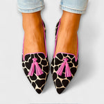 Dodajte svom izgledu razigranu atmosferu s papučama s resicama! Ove nevjerojatne papuče imaju izražajan, životinjski uzorak s zabavnim, kontrastnim resicama i rubovima. Oštar vrh dodaje eleganciju, dok mekani gornji dio i duboki dizajn osiguravaju udobnost i prozračnost.