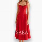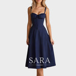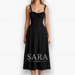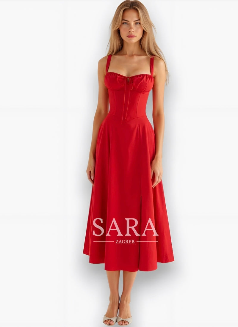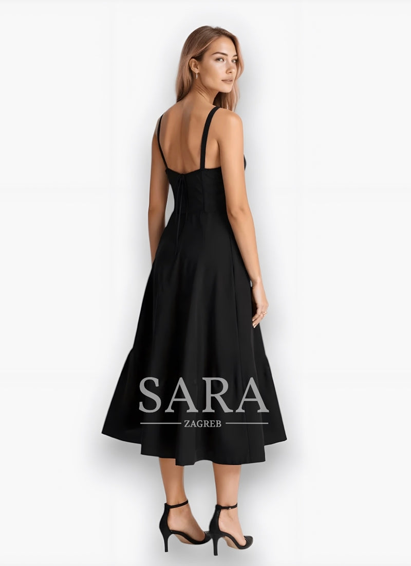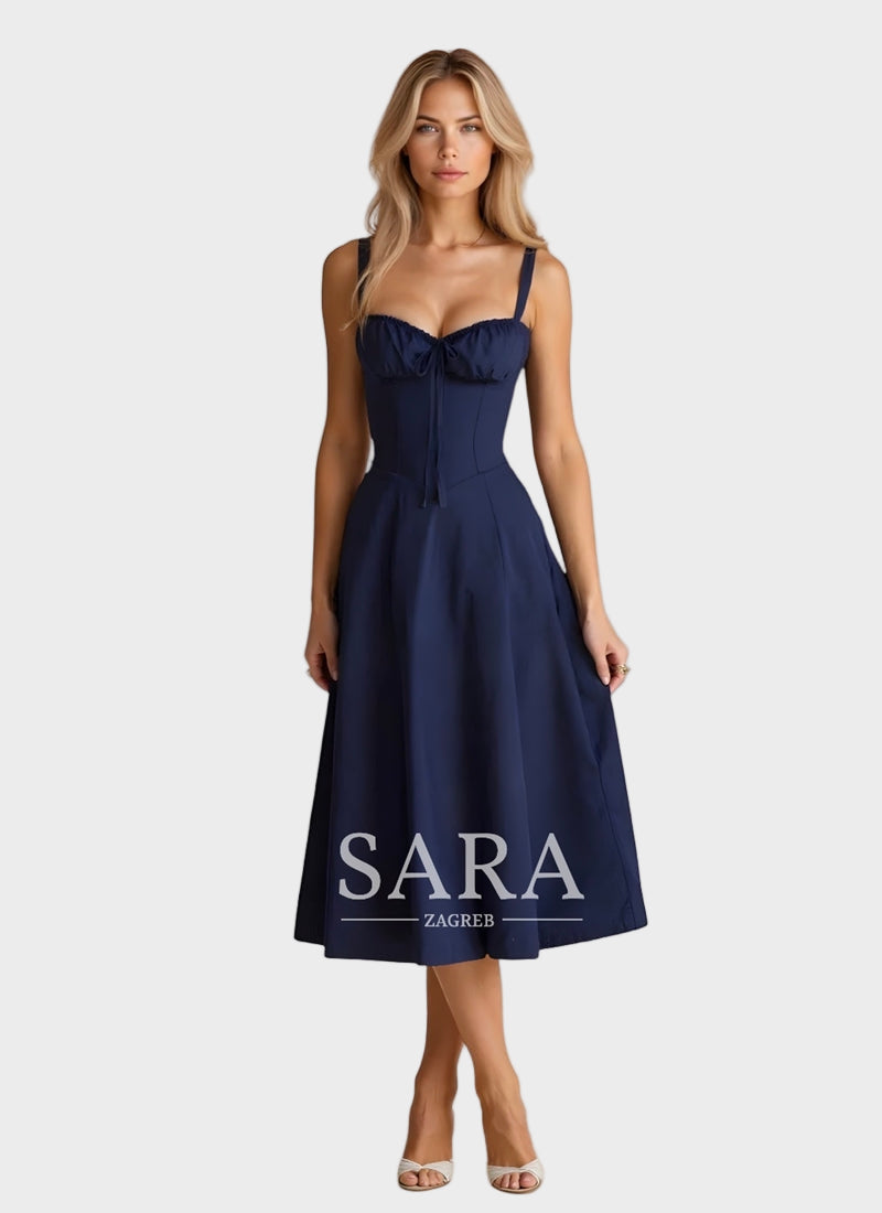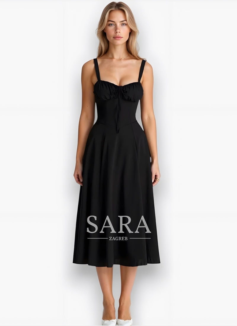 Midi haljina Kiana kombinira uski korzet s lepršavom suknjom – savršena za elegantne pojave.