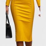 Ova uska haljina od umjetne kože savršen je izbor za žene koje žele istaknuti svoju samouvjerenost i sofisticiranost. Moderni kroj koji prati liniju tijela naglašava figuru, dok materijal visokog sjaja daje odvažan i luksuzan izgled. Idealna je za večernje izlaske, posebne događaje ili trenutke kada želite ostaviti snažan dojam.