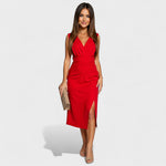 Ova haljina savršen je izbor za posebne prilike kada želite zablistati. S profinjenim krojem koji naglašava struk i elegantnim prorezom koji dodaje dozu senzualnosti, idealna je za večernje izlaske, koktel zabave ili svečane događaje. Kombinirajte je s visokim petama i torbicom za potpuni glamurozan izgled.