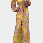 Dramatična i očaravajuća, haljina Leona privlači sve poglede svojim plisiranim dizajnom, napuhanim rukavima i sofisticiranim off-shoulder izrezom. Detalj nabranog dijela u sredini s sjajnim aplikacijama naglašava siluetu, dok prednji izrez donosi pokret i zavodljivost. Dostupna u nizu vibrantnih boja, ova haljina je definicija upečatljive elegancije za posebne prigode.