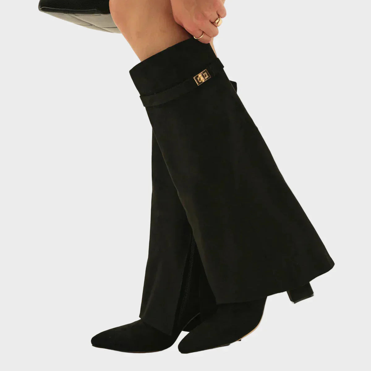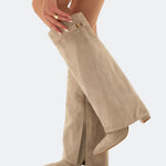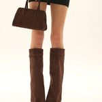 Izrađene od meke brušene kože i vrhunske glatke kože, ove čizme do koljena obavijaju nogu besprijekornim krojem, naglašavajući siluetu s elegancijom i samopouzdanjem.