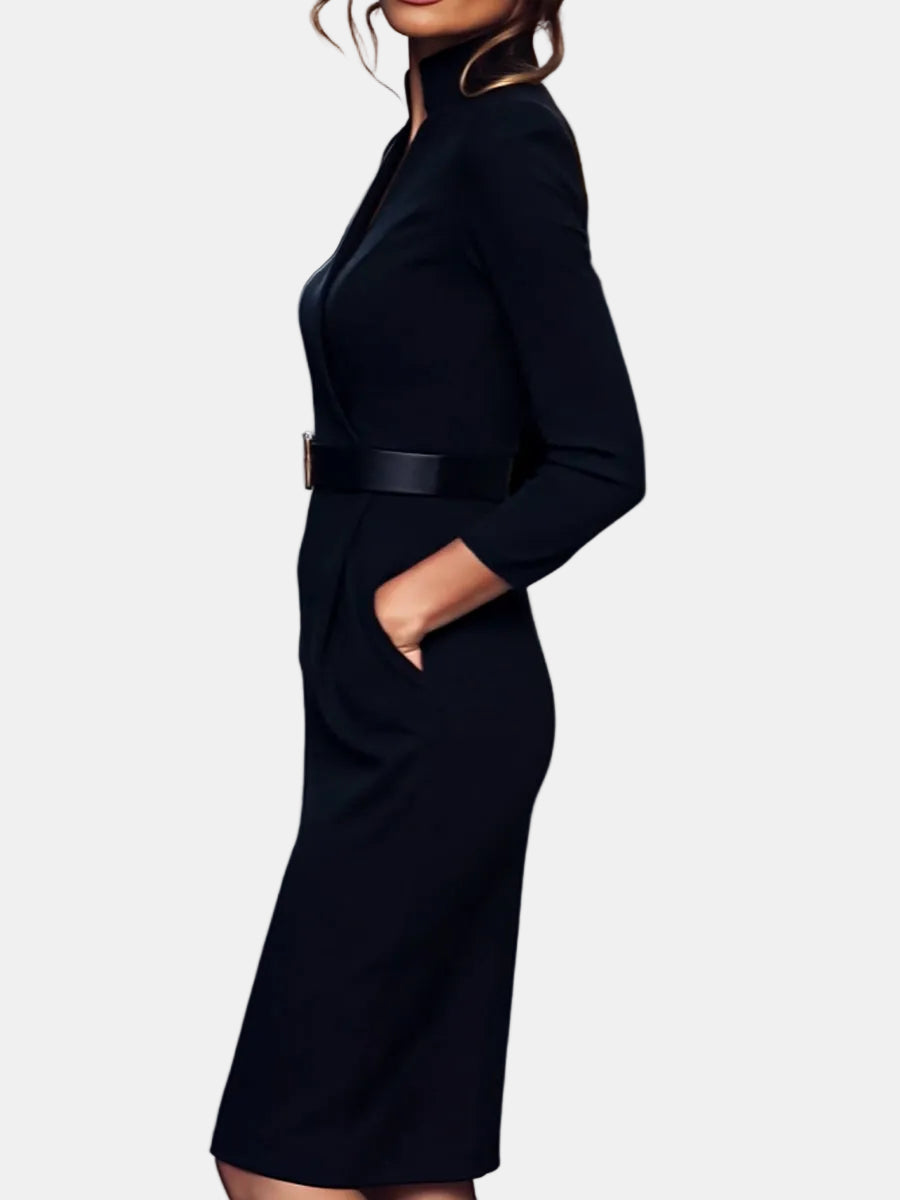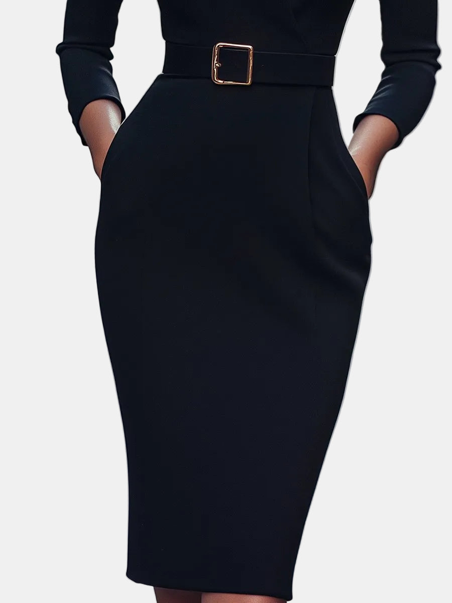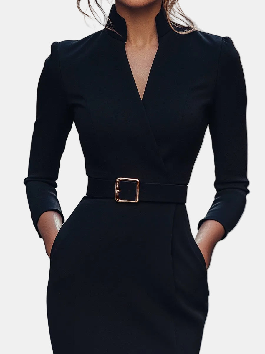 Lina – Elegantna crna haljina s remenom
