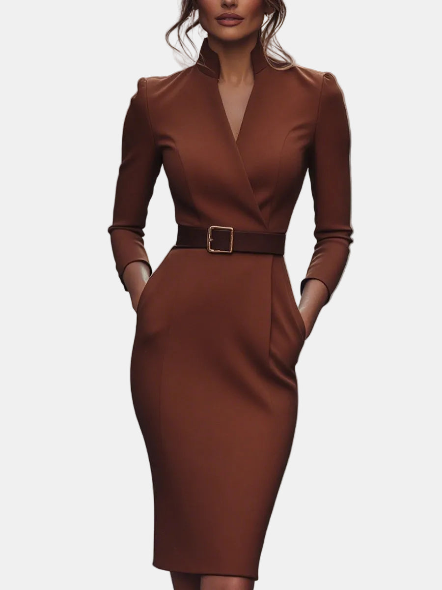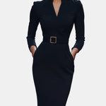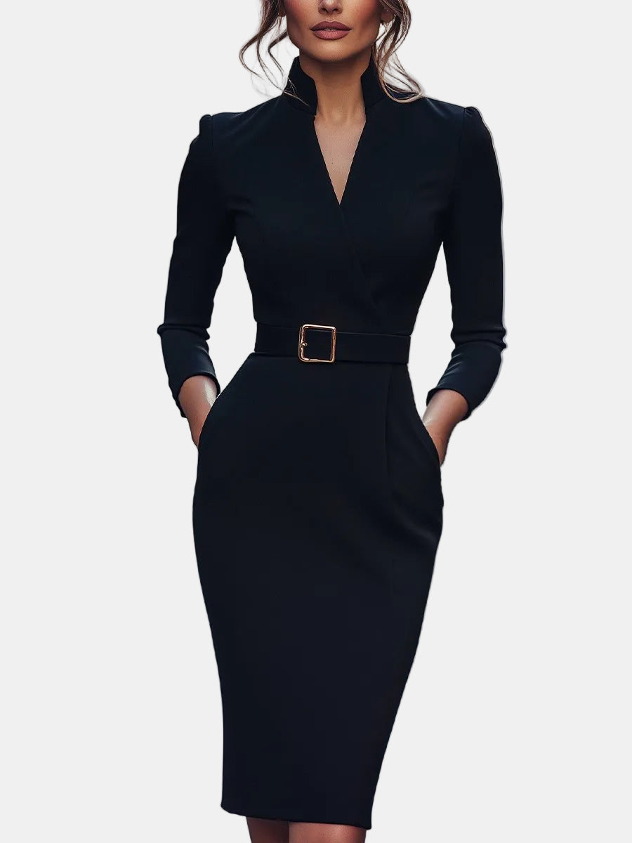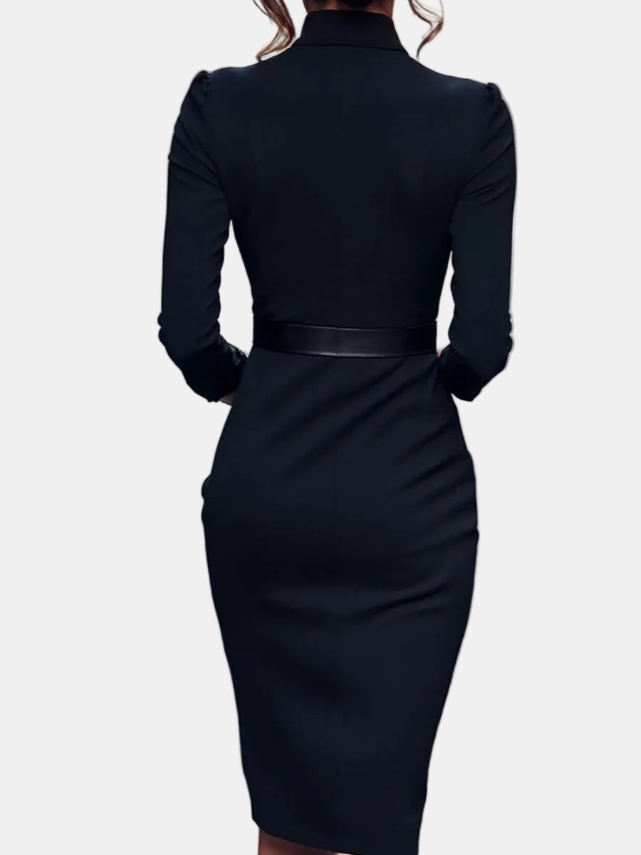 Lina – Elegantna crna haljina s remenom