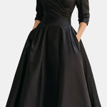 Uđite u svijet sofisticiranosti s Lina midi haljinom od satena — savršena kombinacija vintage šarma i moderne elegancije. Izrađena od visokokvalitetnog satena s delikatnim sjajem, ima drapirani dekolte, uski korzet i lepršavu A-siluetu koja ističe figuru. Džepovi u bočnim šavovima dodaju praktičnost, čineći haljinu i zapanjujućom i funkcionalnom.