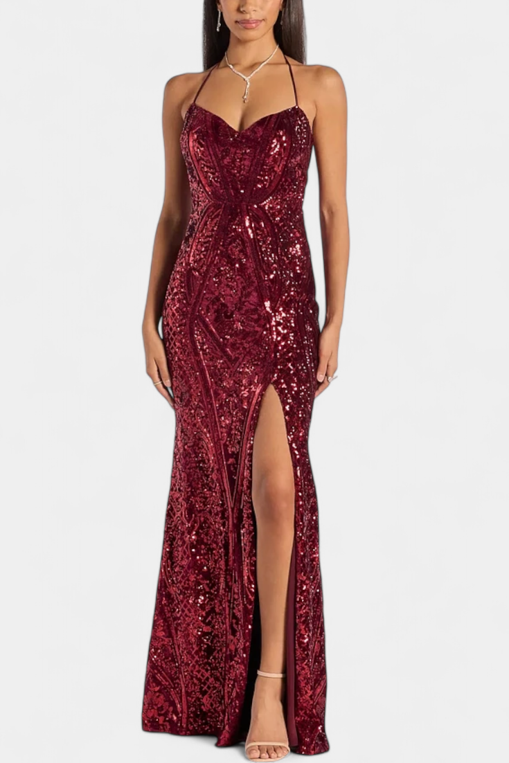 Zanosna silueta koja isijava magnetizam i sofisticiranost. Marijana se ističe halter dizajnom koji ističe figuru i sjajnim završetkom od šljokica koji hvata svaki odsjaj svjetlosti. Njen laskavi kroj čini je savršenim komadom za biti središte svih pogleda.