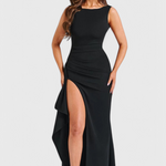Ivana Haljina od Satena s Otvorenim Leđima i Velikim Razrezom