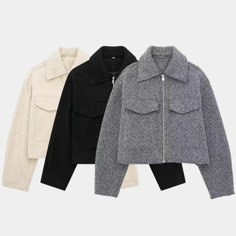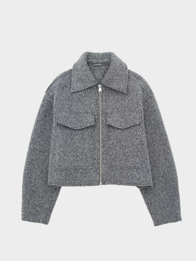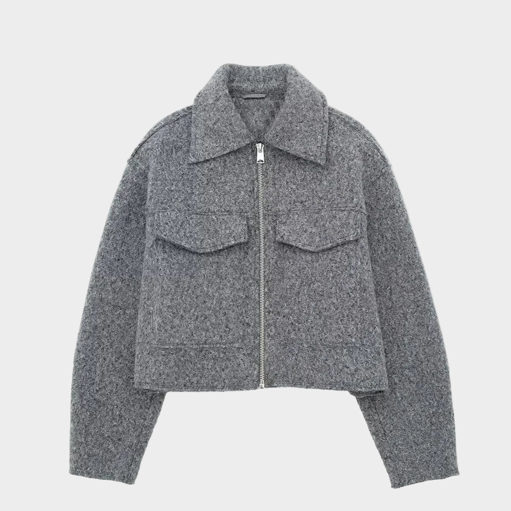 Vintage siva jakna Marta s patentnim zatvaračem i dugačkim rukavima nudi jedinstveni izgled koji će vas izdvojiti iz mase. Savršena za svaku priliku, ova jakna kombinira stil i udobnost, stvarajući savršen dodatak vašem garderoberu.