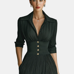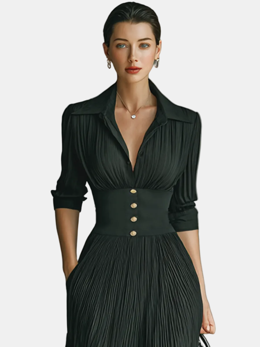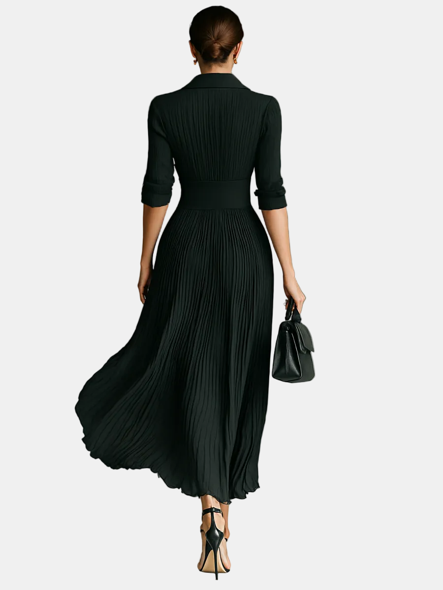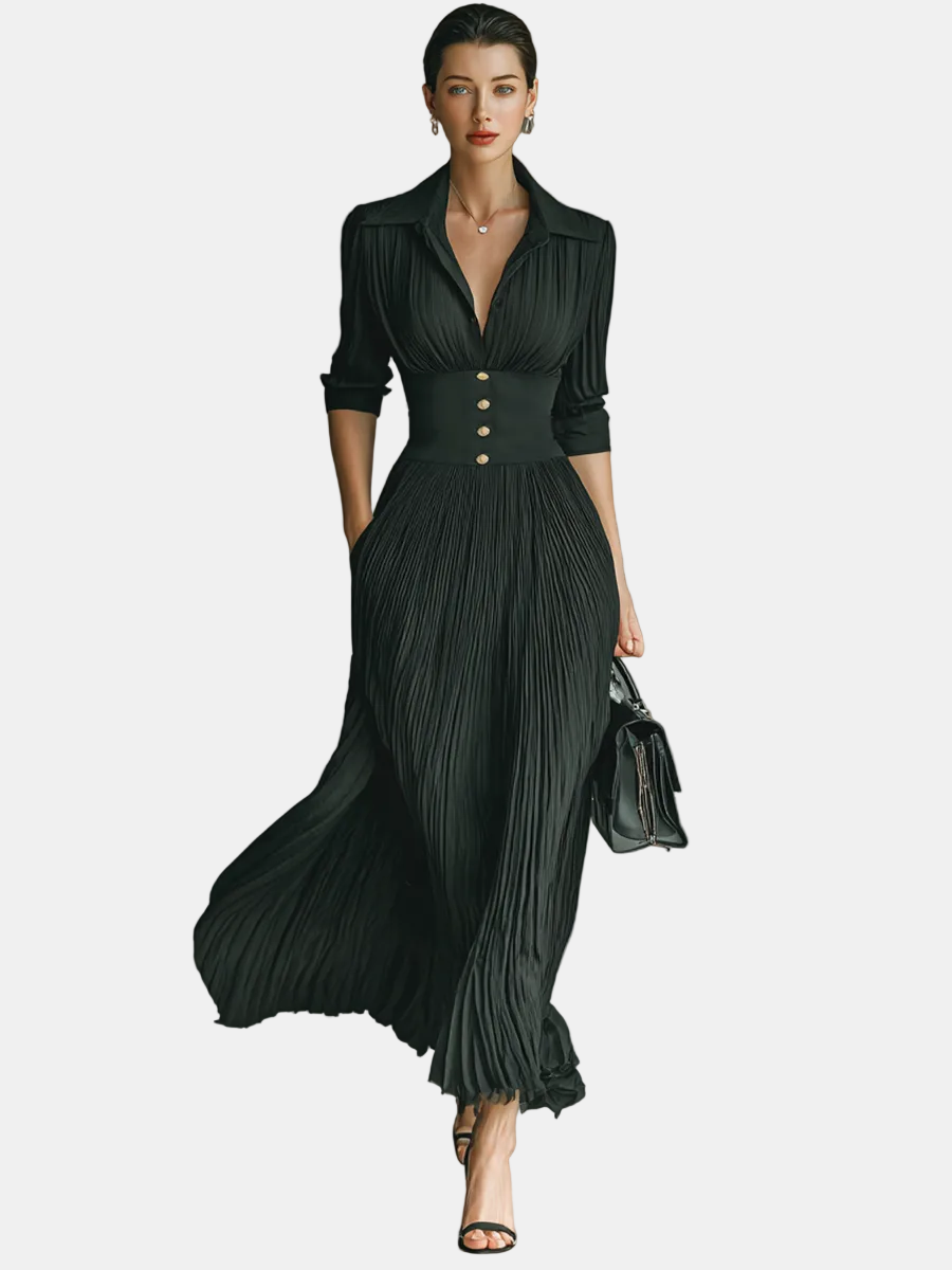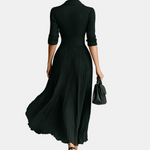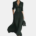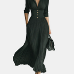 Nika-Maxi Duga Haljina s Dugim Rukavima i Reverom te Naborima