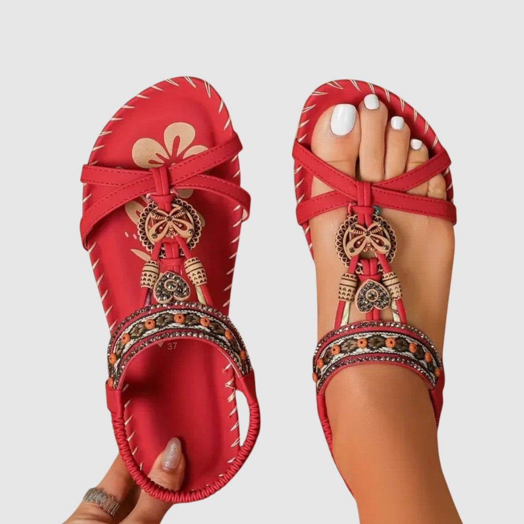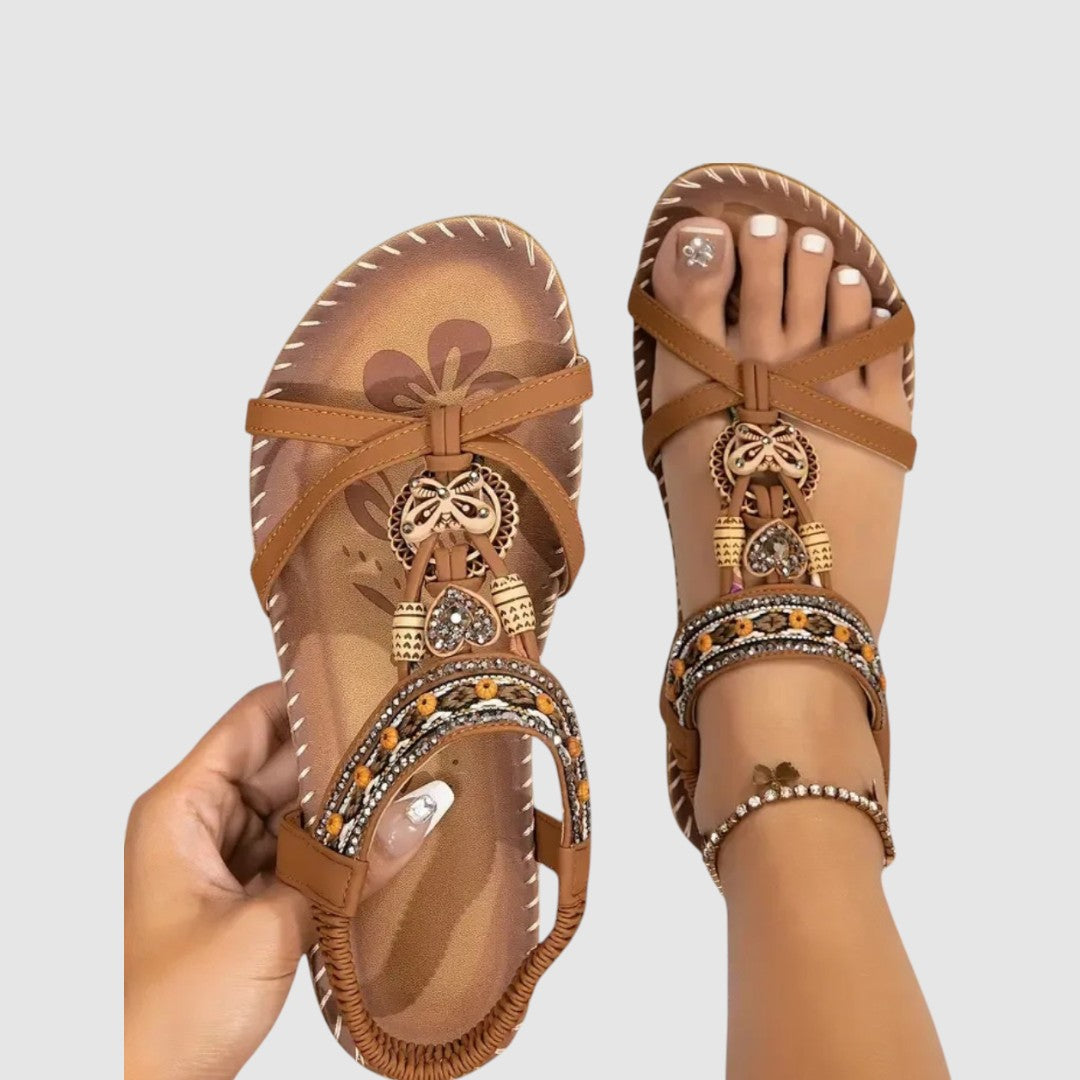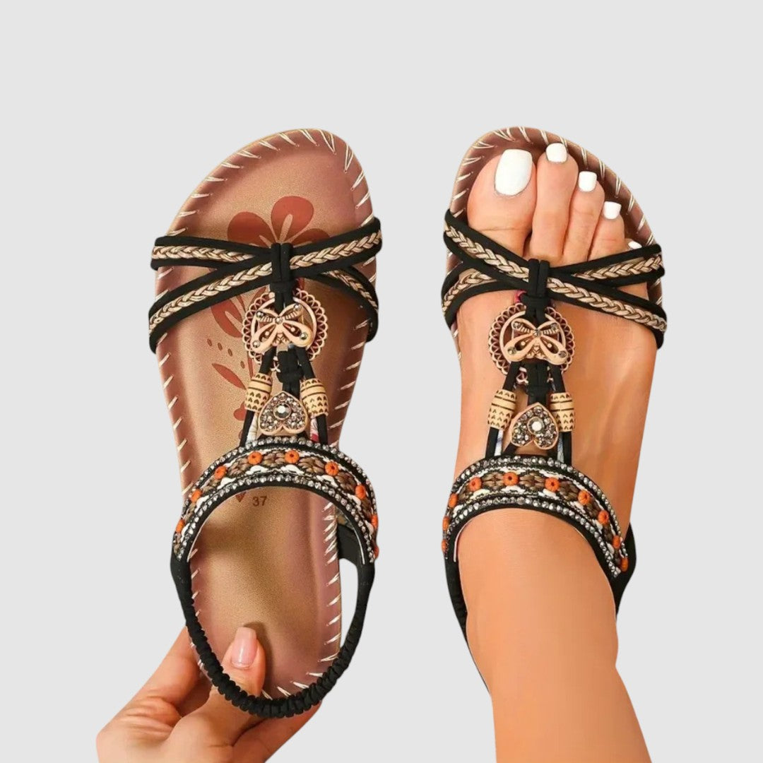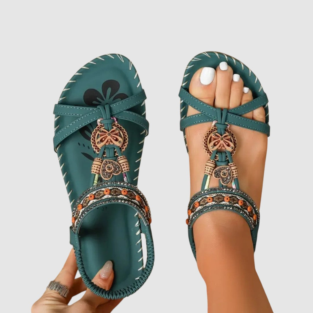 Ove stylish sandale inspirirane boho stilom odmah privlače pažnju svojim originalnim dizajnom i ručno izrađenim detaljima. Uživajte u udobnoj unutrašnjosti i fleksibilnim trakama koje osiguravaju maksimalnu udobnost tijekom cjelodnevnog nošenja.