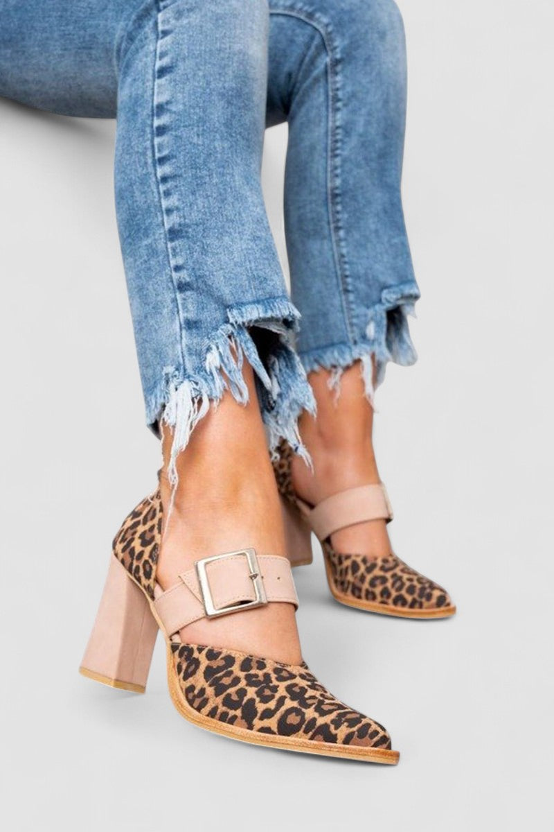 Selveta | Sandale od antilopa s leopard printom i stabilnom petom