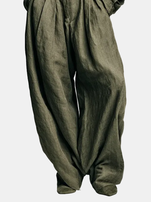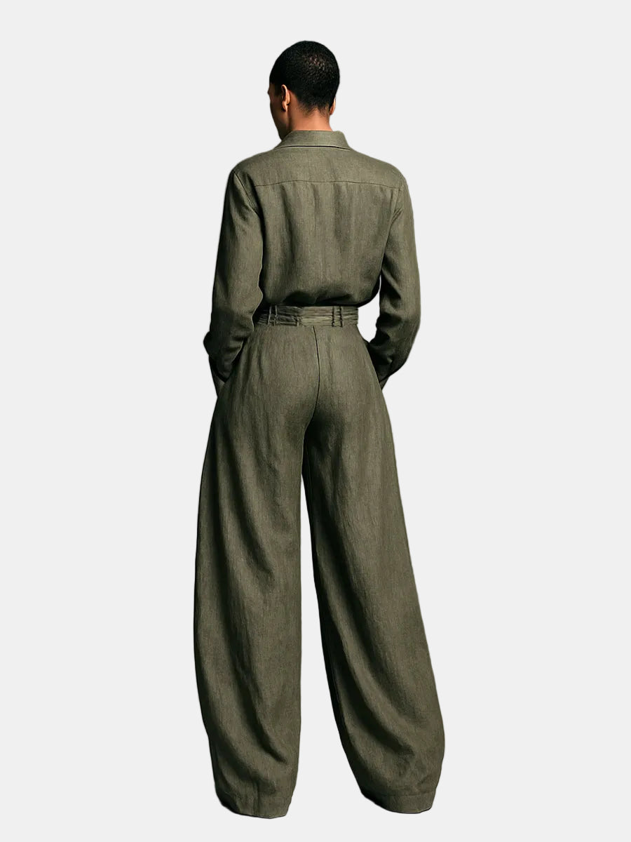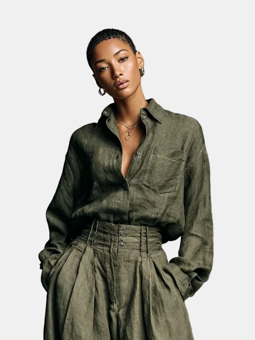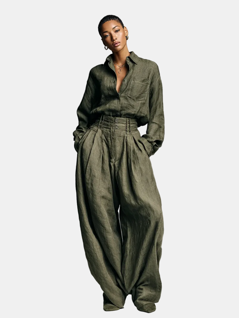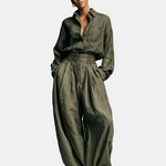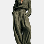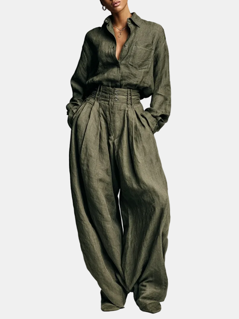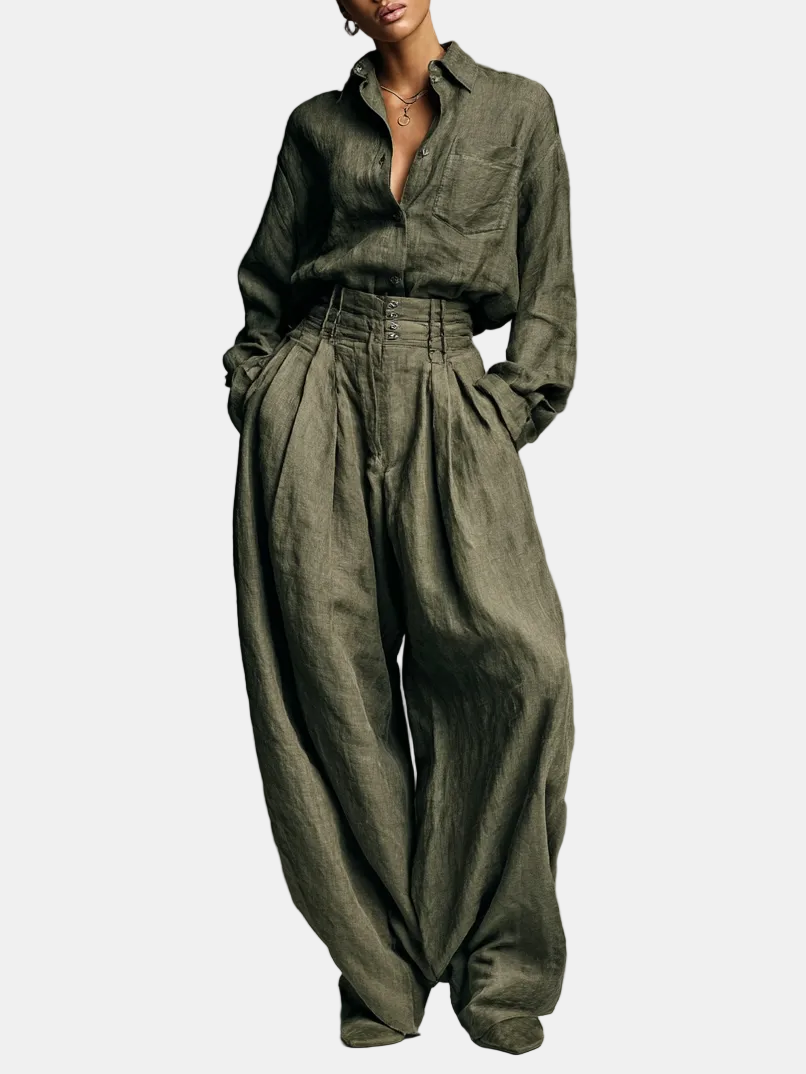Lorena- Set Doppio Ženski u Pamuku i Linu s Košuljom Dugih Rukava i Hlačama Širokih Nogu