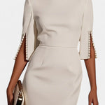 Klasičan dizajn s detaljima koji podižu eleganciju. Vesna se ističe s vječnim okruglim izrezom i polu-dužim rukavima koji uravnotežuju suzdržanost i stil. Bijele imitacije bisera dodaju profinjen i svijetli dodir, transformirajući jednostavnu siluetu u sofisticirani i svestrani komad.