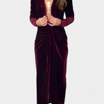 Očaravajuća silueta koja kombinira senzualnost i bezvremensku eleganciju. Vilma se ističe dubokim V-izrezom koji izdužuje figuru, dugim rukavima koji uravnotežuju dizajn i prednjim prorezom koji dodaje dinamiku i odvažan dodir. Zlatni završetak pojačava njezin magnetski karakter, čineći je komadom osmišljenim da zasja u svakoj prilici.